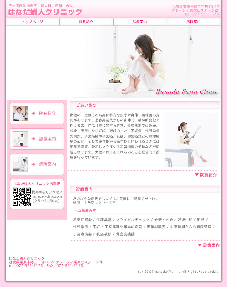 ![]() 画像を拡大する | ホームページ紹介滋賀県栗東市の母体保護法指定医 婦人科・産科・内科のはなだ婦人クリニック。親切・丁寧がモットーに女性におこるこれらのことを総合的に診療を行っています。 はなだ婦人クリニック |