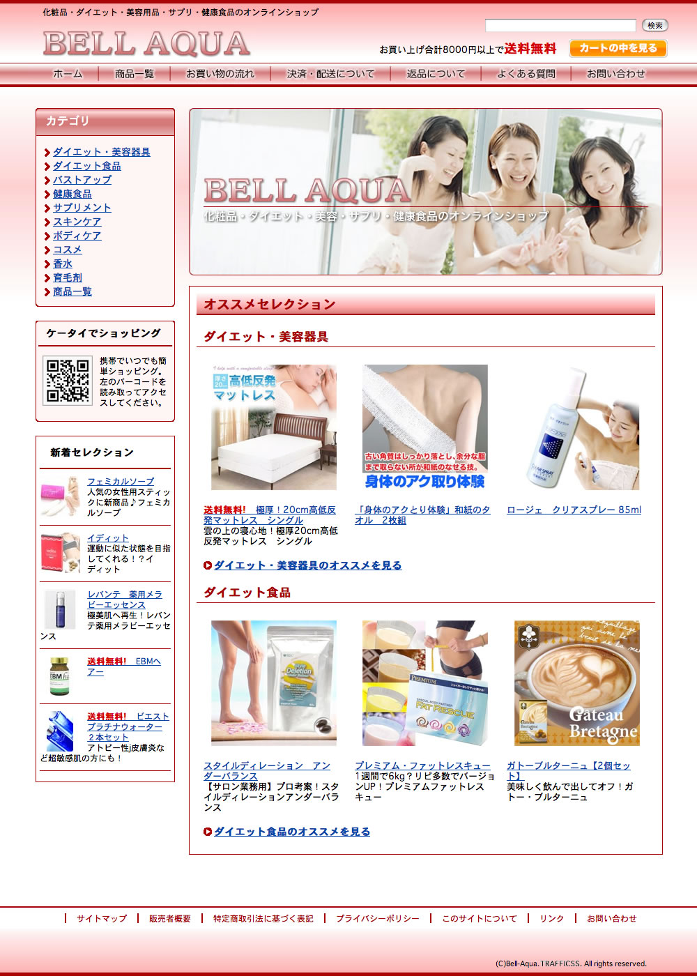 ![]() 画像を拡大する | ホームページ紹介ダイエット・美容器具/ダイエット食品/バストアップ/健康食品/サプリメント/スキンケア/ボディケア コスメ/香水/育毛剤の通信販売を行っています。 |