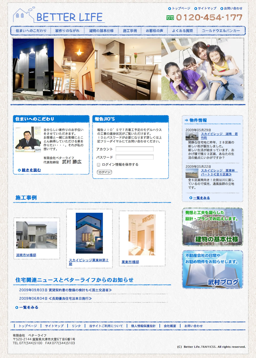 ![]() 画像を拡大する | ホームページ紹介ベターライフは滋賀県/大津市/草津市/栗東市/守山市/の不動産売買・不動産仲介・新築住宅の設計、施工、販売を行っています。お客様と一緒にお客様にとことん納得していただける家づくりを提供できるよう最大限努めさせていただきます。 (有)ベターライフ |
